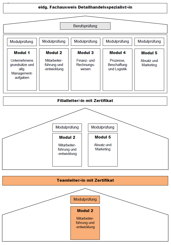 - Die erlangten Kenntnisse und Fähigkeiten bilden die Basis für die verkürzte Ausbildung zum/zur Filialleiter/-in und zum/zur Detailhandelsspezialist/-in mit eidg. Fachausweis.